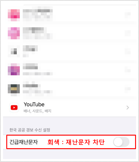 결론 2. 아이폰은 재난 문자 끄고 켜기만 가능 (On, Off 가능)