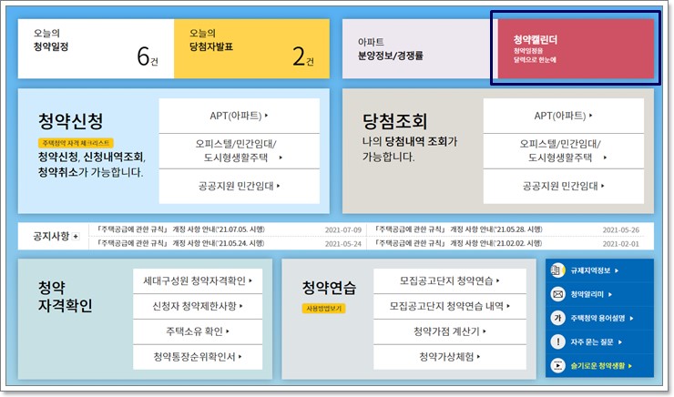 무순위 청약은 '한국 부동산원 청약 홈'에서 확인하실 수 있습니다. 포털에서 검색 후 해당 사이트에 들어간 뒤, 청약 캘린더를 선택하세요. 그 후에 무순위/취소 후 재공급만 선택하시면 됩니다. 일자별로 무순위 청약에 대해서 나오는데 관심 가는 단지를 선택해서 보시면 자세한 일정과 조건 등을 확인하실 수 있습니다.