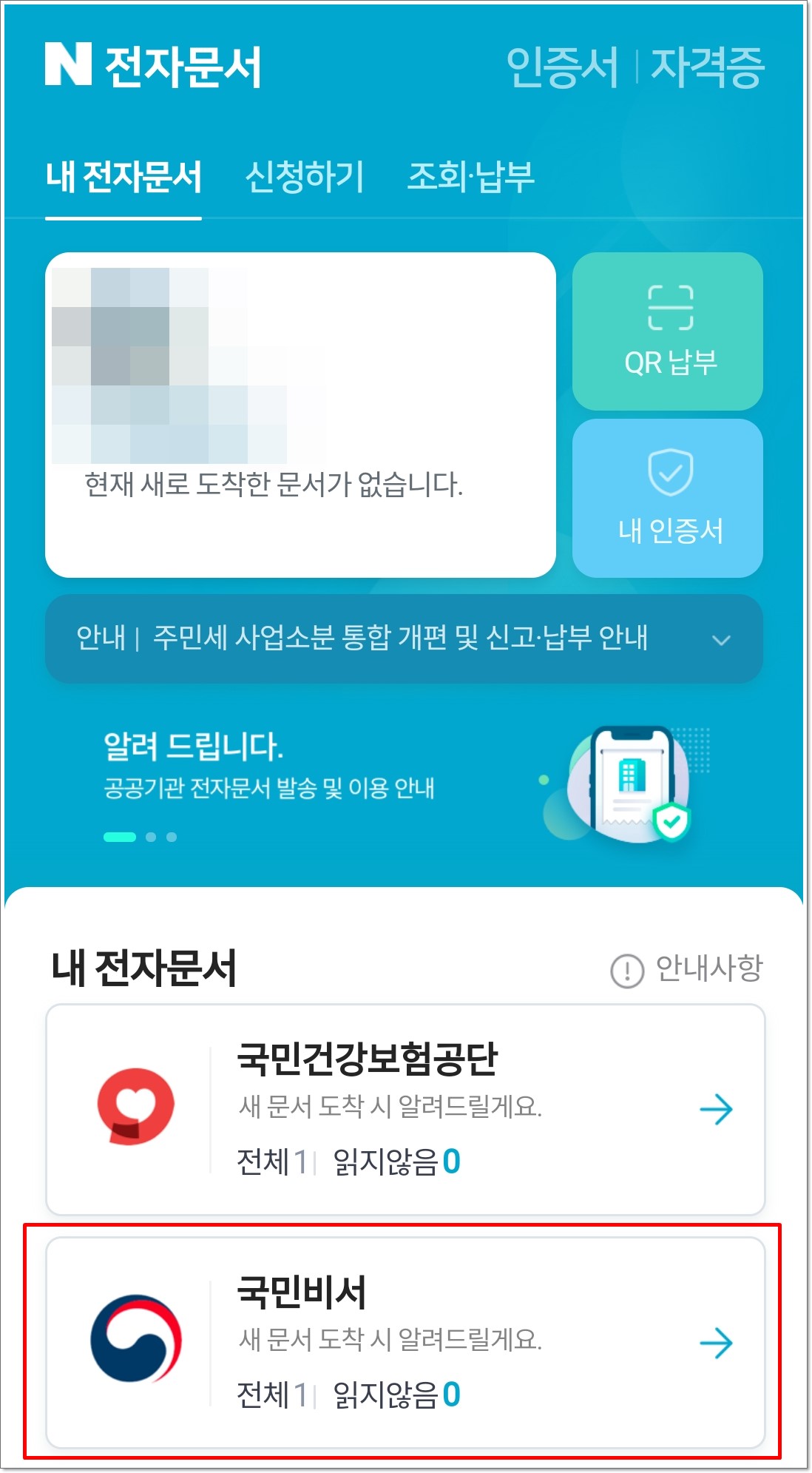 네이버 앱을 여신 후 네이버 전자문서라고 검색하시면 네이버전자문서 공식 홈페이지로 갈 수 있습니다. 혹은 아래의 링크를 통해서도 바로 접속 가능합니다.