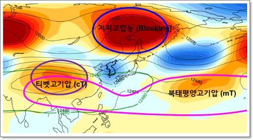 올해 가을 장마는 유독 길고 거세게 지속될 것으로 전망하는데, 그 이유는 바로 기압의 배치 때문입니다. 따뜻한 남서풍이 계속 불어오면서 평년보다 북태평양 고기압이 강하게 서쪽으로 확장되어 있습니다. 거기에 더해서 티베트 고기압이 대기 상층에 자리 잡고 있으며, 한반도 북쪽에는 뜨거운 공기가 쌓이면서 만들어낸 저지고압능이 버티고 있습니다.